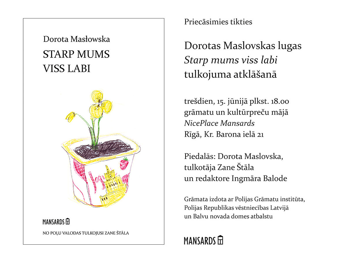 Piedaloties autorei Dorotai Maslovskai, tulkotājai Zanei Štālai un redaktorei Ingmārai Balodei.